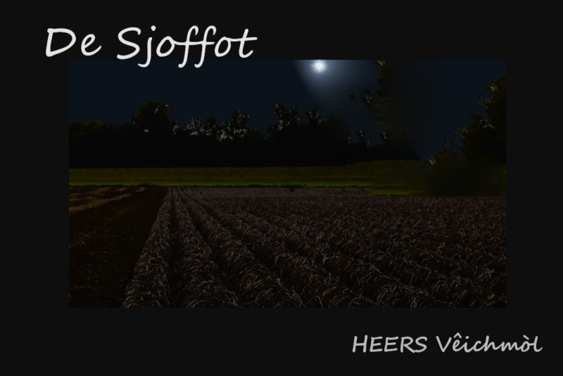 Iech koom trug nao thôös, Grut-Lown berg aof en 9doen zoog iech e liech op ‘t veld van Boemmershove 10bjánne. ‘t Wes half twelf ‘s naâs en ‘t wes djuus Allerhèllige. ‘t Wes mesjien ‘n ziel wa versjeên